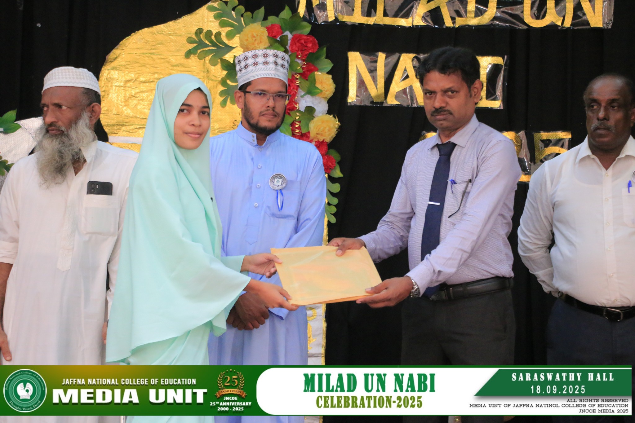 யாழ்ப்பாணம் தேசிய கல்வியியற் கல்லூரியின் இஸ்லாமிய சமயத்தவர்களது முக்கிய பண்டிகைகளில் ஒன்றான மீலாது நபி நிகழ்வானது இஸ்லாமிய மன்றத்தின் ஏற்பாட்டினால் கல்லூரியின் பீடாதிபதி திரு. இராசையா லோகேஸ்வரன் அவர்களின் தலைமையில் 18.09.2025 அன்று இடம்பெற்றது.