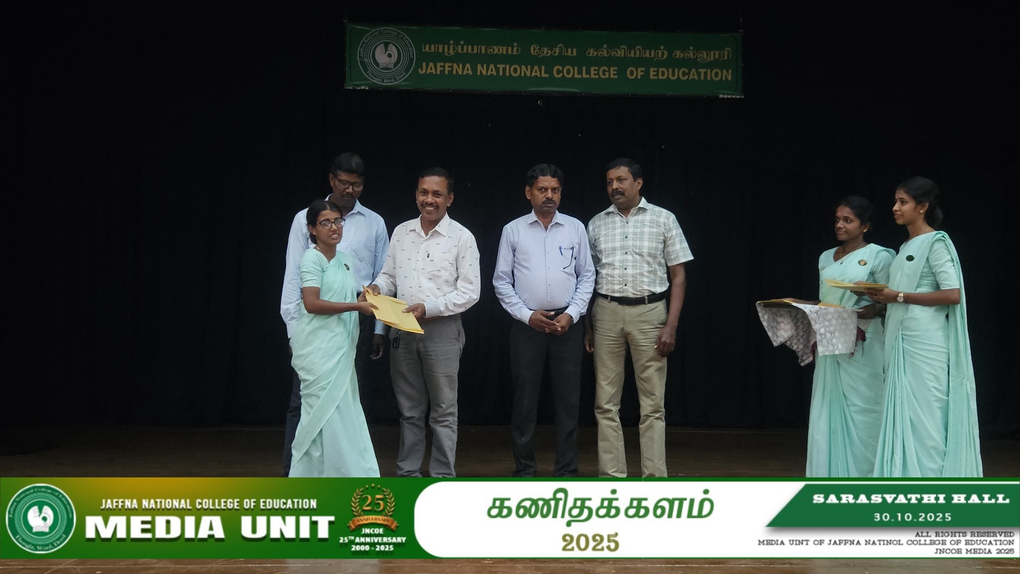 யாழ்ப்பாணம் தேசிய கல்வியியற்கல்லூரியின் கணித மன்றத்தின் ஏற்பாட்டினால் நடைபெற்ற கணிதக்கள போட்டியின் பரிசில் வழங்கும் நிகழ்வானது கல்லூரியின் பீடாதிபதி திரு. இராசையா லோகேஸ்வரன் அவர்களின் தலைமையில் 30.10.2025 அன்று இடம்பெற்றது.
