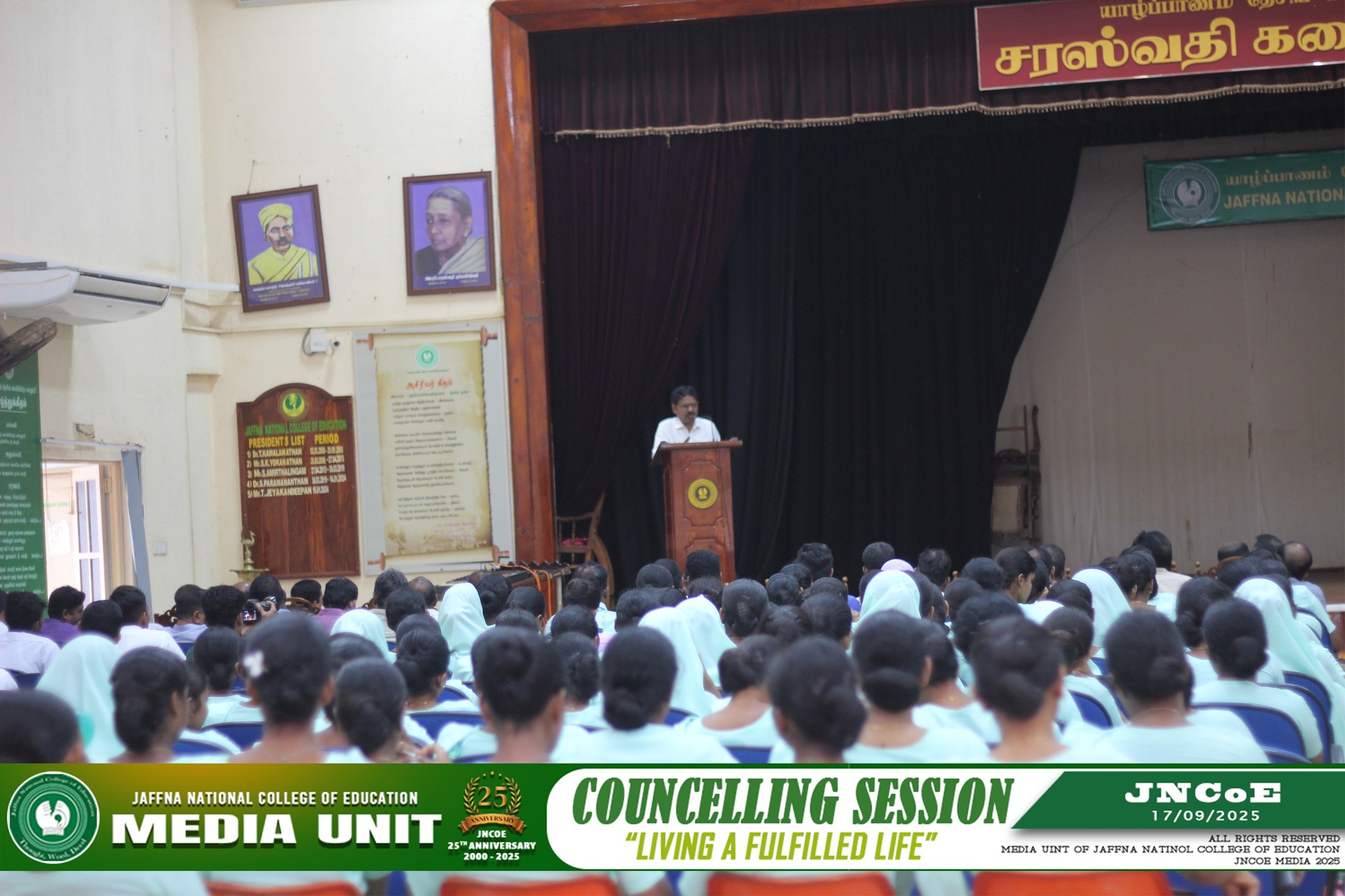 யாழ்ப்பாணம் தேசிய கல்வியியற் கல்லூரியின் மாணவ ஆசிரியர்கள் மற்றும் விரிவுரையாளர்களுக்கான உள நெருக்கடியில் இருந்து விடுபடுவதற்கான வழிமுறைகள் தொடர்பான செயலமர்வானது முதன்மை வளவாளராக பேராசிரியர். செல்வம் கண்ணதாசன் (சிரேஷ்ட விரிவுரையாளர், மருத்துவ பீடம், யாழ்ப்பாணம் பல்கலைக்கழகம்) அவர்களினால் கல்லூரியின் பீடாதிபதி திரு. இராசையா லோகேஸ்வரன் அவர்களின் தலைமையில் 17.09.2025 புதன்கிழமை அன்று இடம்பெற்றது. ![]() ![]() ![]() ![]() ![]() |