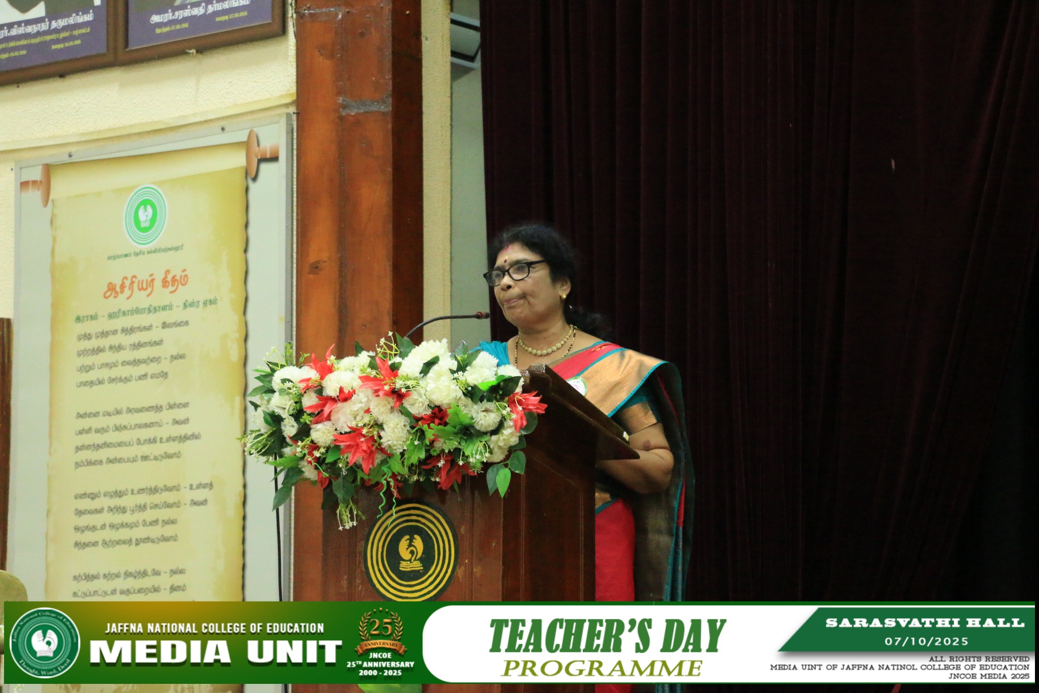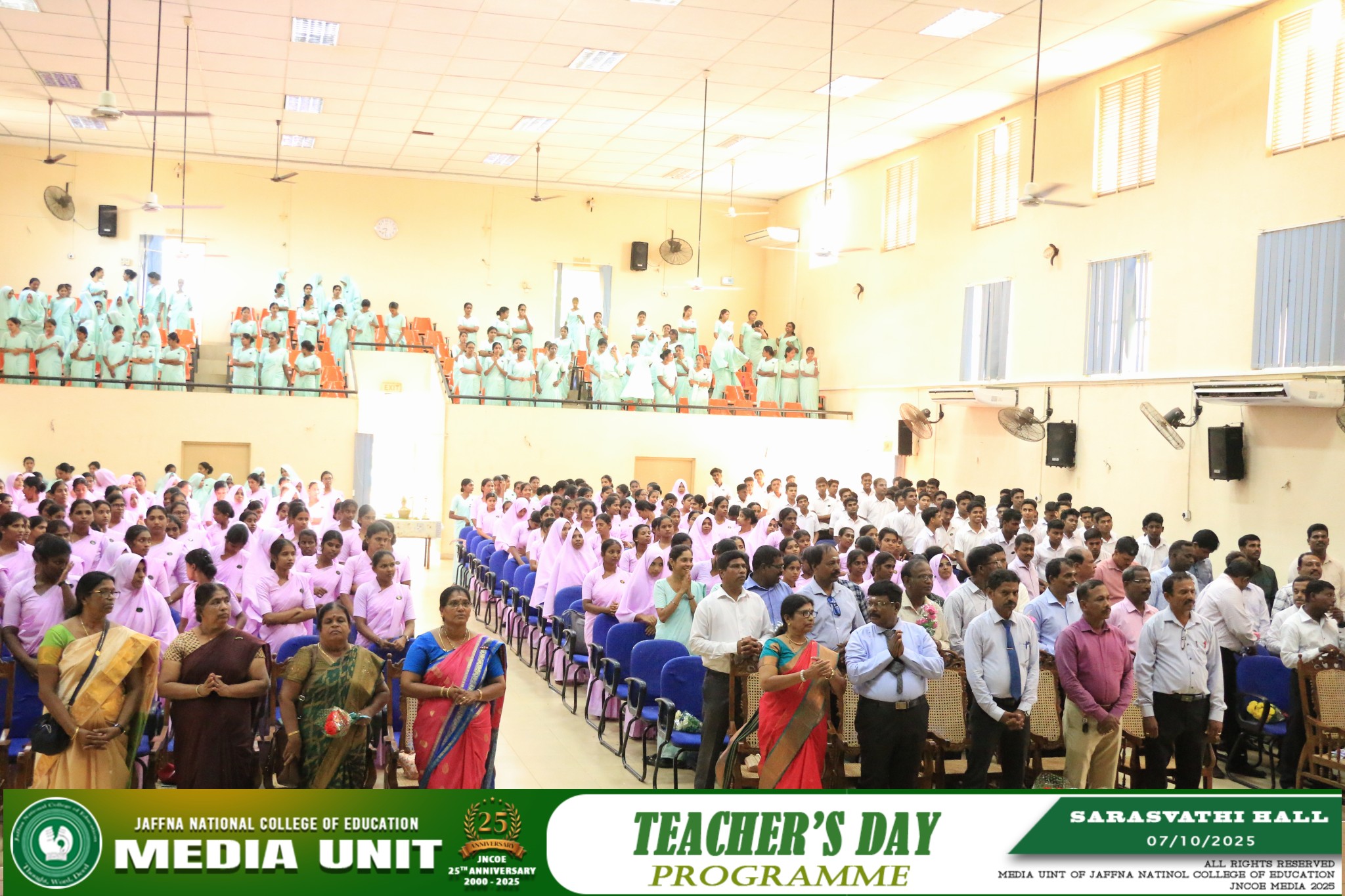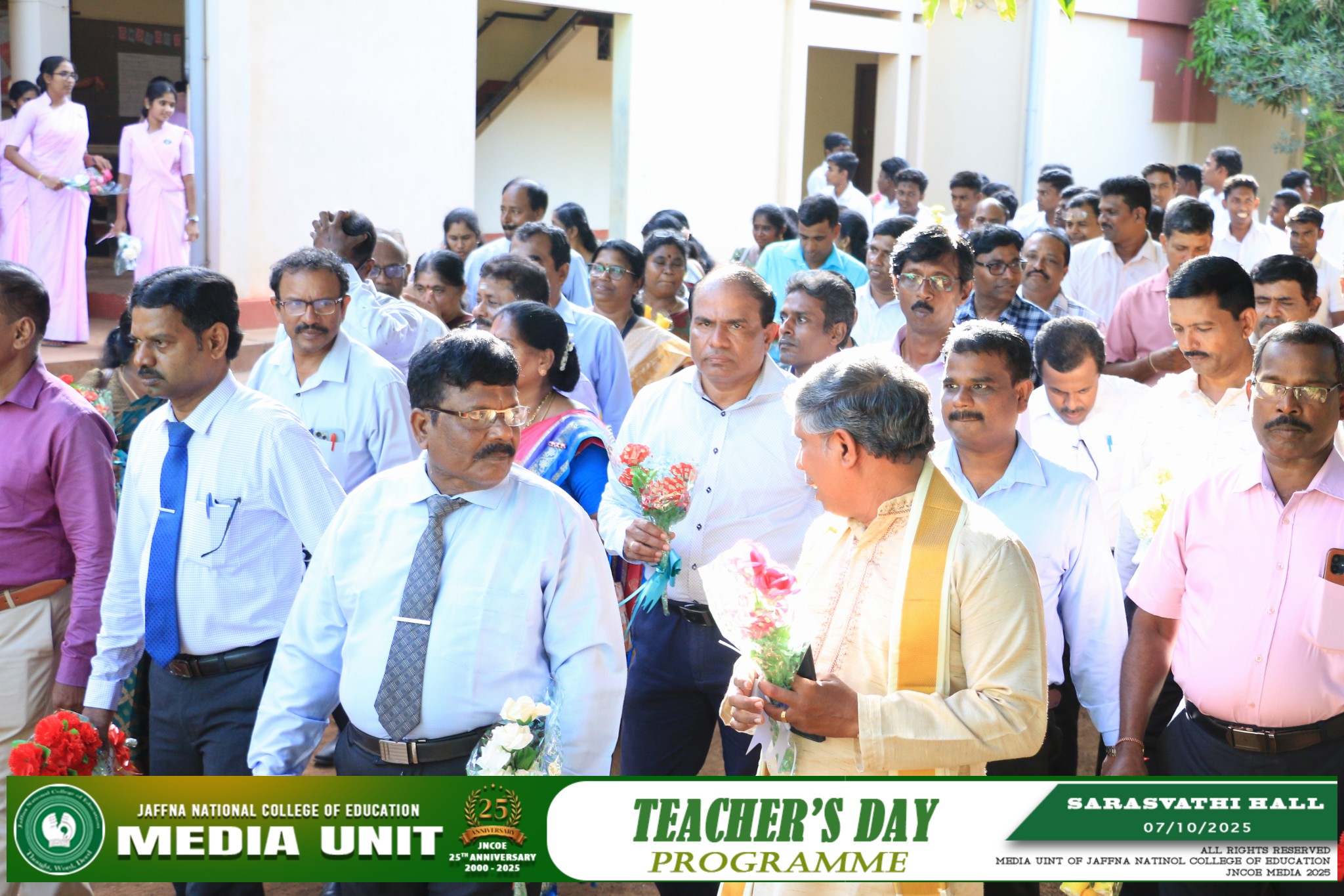 யாழ்ப்பாணம் தேசிய கல்வியியற் கல்லூரியில் ஆசிரியர் தின நிகழ்வானது கலாசார மன்றத்தின் ஏற்பாட்டால் கல்லூரியின் பீடாதிபதி திரு . இராசையா லோகேஸ்வரன் அவர்களின் தலைமையில் 07.10.2025 (செவ்வாய்க்கிழமை) அன்று கல்லூரியின் பிரதான மண்டபத்தில் (சரஸ்வதி மண்டபம்) சிறப்பாக நடைபெற்றது. ![]() ![]() ![]() ![]() ![]() ![]() |