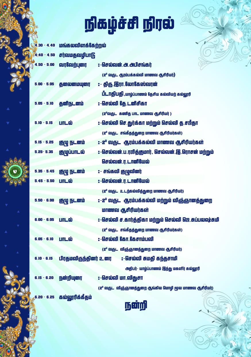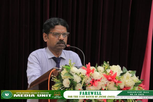 யாழ்ப்பாணம் தேசிய கல்வியியற் கல்லூரியின் இரண்டாம் வருட மாணவ ஆசிரியர்களது பிரியாவிடை மற்றும் விருந்துபசார நிகழ்வானது கலாசார மன்றத்தின் ஏற்பாட்டினால் கல்லூரியின் பீடாதிபதி திரு. இராசையா லோகேஸ்வரன் அவர்களின் தலைமையில் 08.10.2025 (புதன் கிழமை) அன்று சிறப்பாக இடம்பெற்றது. ![]() ![]() ![]() ![]() ![]() ![]() |