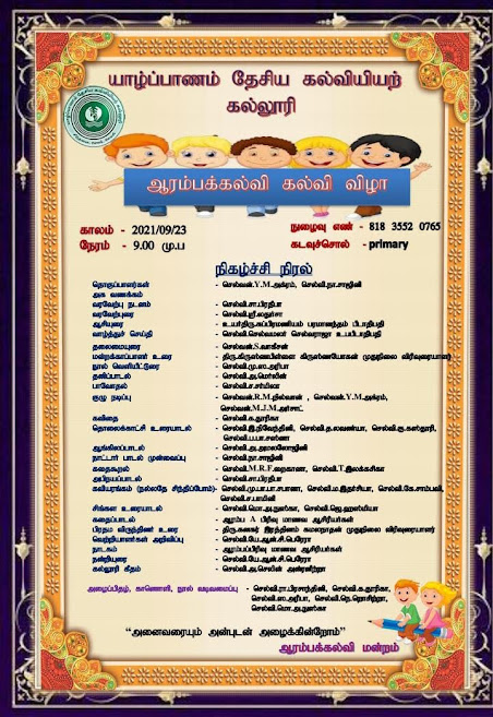 யாழ்ப்பாணம் தேசிய கல்வியியற் கல்லூரியின் ஆரம்பக்கல்வி மன்றம் வழங்கும்
