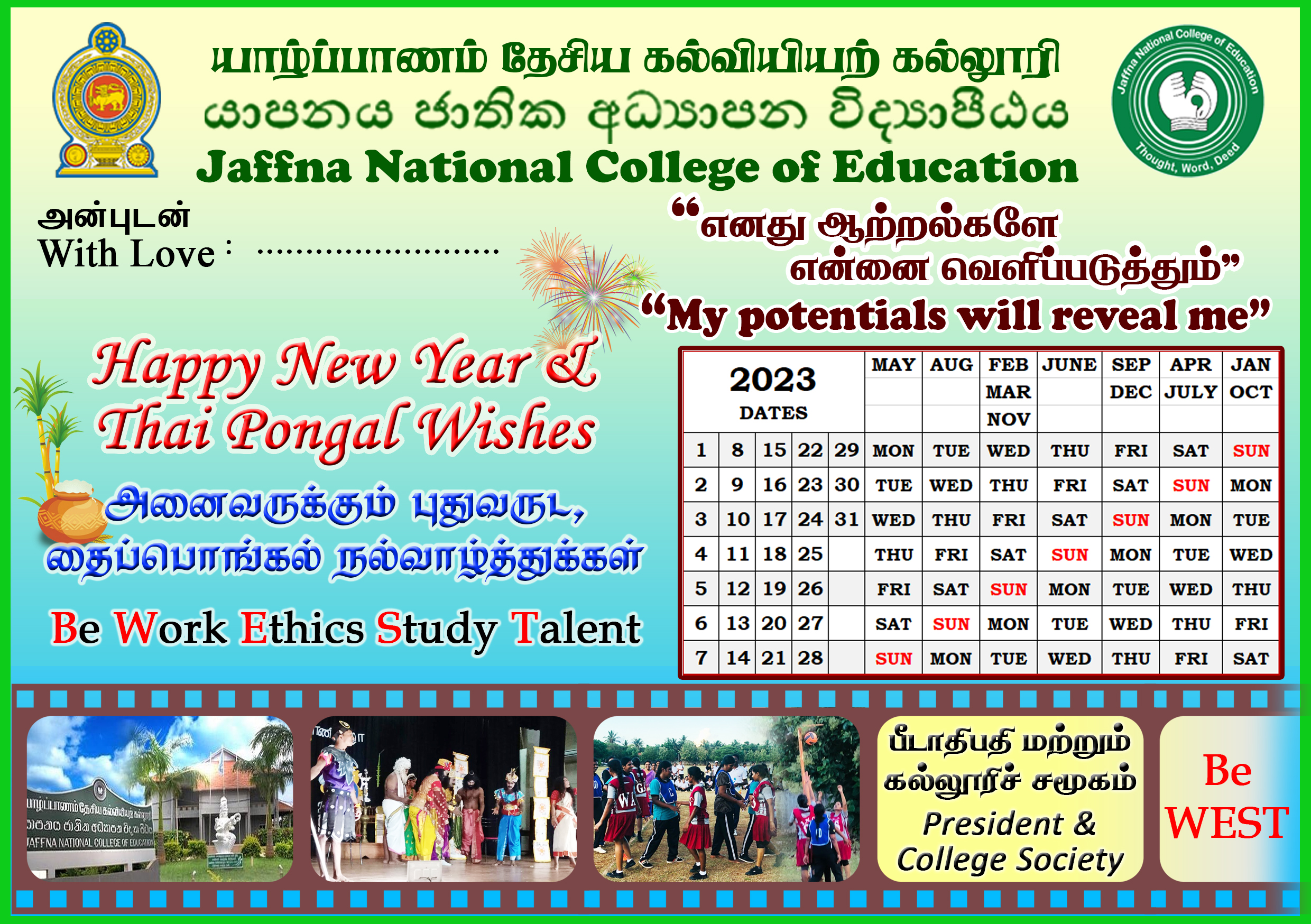 யாழ்ப்பாணம் தேசிய கல்வியியற் கல்லூரியானது வருடாந்தம் ஒவ்வொரு தொனிப் பொருளை அடிப்படையாகக் கொண்டு இயங்கி வருகின்றது. அந்த வகையில் 2023ஆம் வருடமானது "எனது ஆற்றல்களே என்னை வெளிப்படுத்தும்” என்னும் தொனிப் பொருளை அடிப்படையாகக் கொண்டு 01.01.2023 அன்று இப் புதிய வருடத்தை ஆரம்பித்துள்ளது.